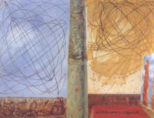 So Ernst, following several years of invention in decalcomania, further extended his sense of adventure, painting with a method that actually employed a fully-automatic function — the law of gravity — to control the paint, leaving the artist’s hand momentarily out of the act altogether. Late in life Ernst wrote in his biographical notes, entitled Tissue of Truth, Tissue of Lies, a few playfully misleading comments regarding his “drip” technique. Offered here in response are some observations about the process, including a bit of speculation about Ernst’s method and his motives.