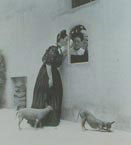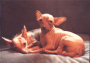 Once in the capital city, I started looking in the phone book for “pet stores”. I made a lot of calls and came up with nothing until I talked to an old man who knew of a breeder of these legendary dogs. She was a Spanish marquesa. Actually, she was la Marquesa de Premio Real, and she lived in a four-hundred-year-old house surrounded by fifteen-foot high stone walls in the center of Mexico City. When I phoned her, I explained that I had come from the United States to find the famous Mexican Hairless Dog, and that I was interested in establishing the breed north of the border. The marquesa was very gracious, and she invited me over to see the dogs myself, at that point for the very first time. Before then, I had only seen photos. When I first laid eyes on these dogs in the marquesa’s large, pefectly-manicured back yard, I was impressed. There, gamboling on the green, were four muscular, square-headed, frisky animals, and they really were quite hairless…just a little wisp of hair on top of their heads, sort of like something Dr. Seuss would think up.They also appeared to have no teeth. I asked the marquesa about that, and she explained the genetic connection between teeth and hair. The trait for each feature is located on the same gene pair, and if the individual has no hair, he by definition has no teeth…well, very few teeth, anyway. The pups are born with all their baby teeth, but a large portion of the adult buds are never there. This apparently would also explain why the dogs were so fond of fruits, vegetables, and grain. They liked meat, but nature didn’t give them the means to catch and subdue much of that, so they were omnivorous foragers by default. The marquesa went on to tell me of the history of these dogs in Mexico. I had heard that Frida Kahlo kept them, and I had seen, in my preliminary research, ceramic renditions of fat little dogs done by Pre-columbian craftsmen, and now it started to make sense to me.