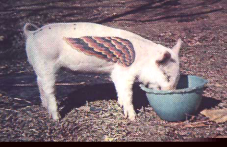 The entire procedure was painless, completely sterile, and surgically precise. Everybody did a marvelous job, and Minnesota, after going to sleep as just an ordinary pig, woke up as the only winged pig in the world.